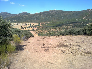 Una vez en el Puerto, cogimos el camino de Don Luis, posteriormente dirección a fuente Umbión, subida por el camino de Fuente Fresno a Herencia hasta Cuatro caminos y bajada hasta el carreterin Urda -Villarrubia de los Ojos lugar donde almorzamos con la berrea de fondo, siempre por esta zona se siente uno obserbado por los distintos animales, que se esconden entre arbustos y pinos, esta vez hasta los oliamos... tras repostar empredemos camino de vuelta, aquí es donde comienza "el abrigüal caminos de Miguel " nos desviamos del camino Fuente Fresno-Herencia para coger dirección a la casa de los Apriscos lugar donde David parte la cadena y tenemos que reparar... menos de 10 min y de vuelta a pedalear para llegar al cortafuegos, que suponemos que siguiendo nos lleve a empalmar con el camino Fuente Fresno-Consuegra y desde allí a cuatro caminos, pero no... hay una valla que nos corta el paso y seguir el cortafuego nos aleja demasiado de la ruta, y viendo el reloj, pensamos en volver por nuestros pasos y bajar todo lo subido. Vuelta a empezar dirección a Cuatro Caminos, Fuente Umbrión, Camino Casa de Don Luis, y Puerto Lápice. La ruta que nos salió fue de 50 km. y con las paradas pertinentes para ver los bichos salvajes, madrigueras y distintas averías..
